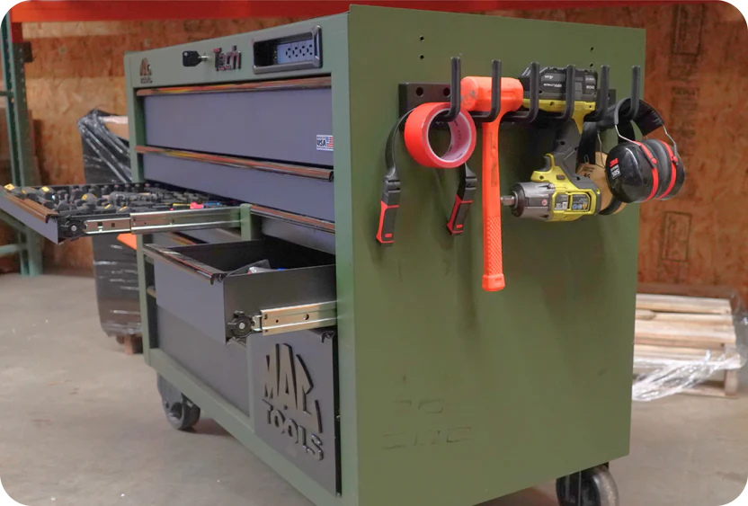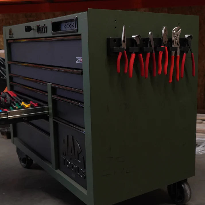 Vertical storage keeps tools visible and spaced out, so nothing hides behind anything else. You’ll know what’s there, what’s missing, and exactly where everything goes—at a glance.